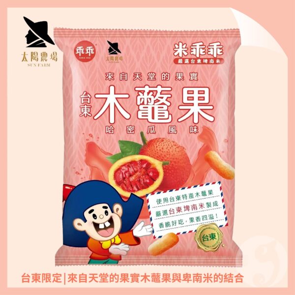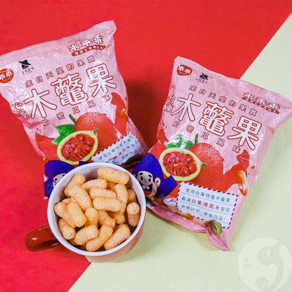 選用來自天堂的果實-木虌果,木虌果本身無味但卻深藏不漏,木虌果甲種皮的茄紅素含量比番茄高🔺70倍❗❗,類胡蘿蔔素是胡蘿蔔的15倍❗❗,加上結合台東卑南溪灌溉所富含礦物質的卑南米,雙雙結合而成,具有高價值的零嘴乖乖,另外添加哈密瓜提升風味,香氣十足的哈密瓜味,口感香脆好吃,是小朋友喜愛的味道、也是大人無負擔的零嘴,好吃的心情在昇華💟