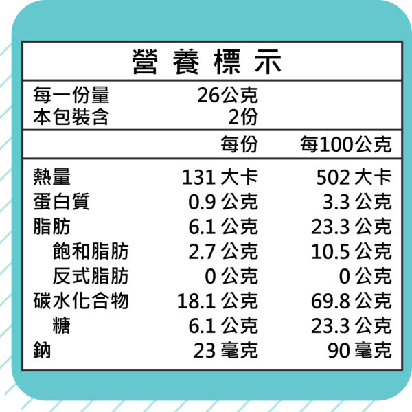 | 保存方式 | 請避免陽光直射及高溫處,開封後請儘速食用完畢 |